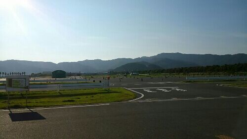 今日は平日中上級。募集20名に対してキャンセルもあり、7名。平日だしこんなもんでしょう、とはT林イントラさんの弁。しかし、ここ3回ほど10名程度のスクールの参加が続く。それもT林さんが連続。1300に乗り換えてからも3回なので、何か因縁があるのか?T林さんはイントラ大会に向けてNC750Lばかりです。昨日まで駐車場と化していたので、パイロンを今朝置いたとのことで、結構ワイドなコース設定。通常ブレーキングエリアも使ったオフセット、帰りは外周路でストパイ、とか。このストパイ、午前後半は3.75mピッチというとんでもないショートスパンでの練習もありました。1300にはキツイ、キツイ。コーススラもバリアブルで大きなオフセット+定常円など、アクセル開ける設定。でも、一部は細かいターンもあり、練習しがいのあるコースでした。3回のスクールでT林さんからは、「ターン前半は荷重がかかっているが、後半荷重が抜ける」というアドバイスを受けました。75kmほど走りました。今日の練習を19日のスクールに生かしたいです。