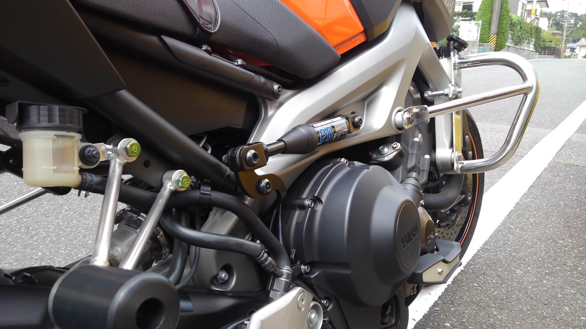 昨日浜名湖までの往復150kmを走っての感想。 走り始めのころは大きめの振動が少なくなったと感じだだけだったが、50km、100kmと走ると慣らしも終わったのか、タイヤの接地感をしっかりと感じるようになった。 微振動も痺れがでるようなものはなくて、少し振動があるなと感じる程度になった。 高速道路での走行も、過去これ以上出す気にならないと思った速度より、気が付くと10km/h以上出していた。 たぶん接地感が強くなったからだと思う。 結論として、買いのアイテムでした。 たぶん、SSなどのバイクはこう言った部分は、吊るしの状態でも大丈夫なんだろうけど、MT-09(特に初期型)は正直足回りが弱いので、こういった対策を取ることで安定して乗ることができると思う。 既にフロントサスはインナーカートリッジを交換しているので、ポンつけした状態とは比較できないが、フロントサスと同様に取り付けてよいと思います。