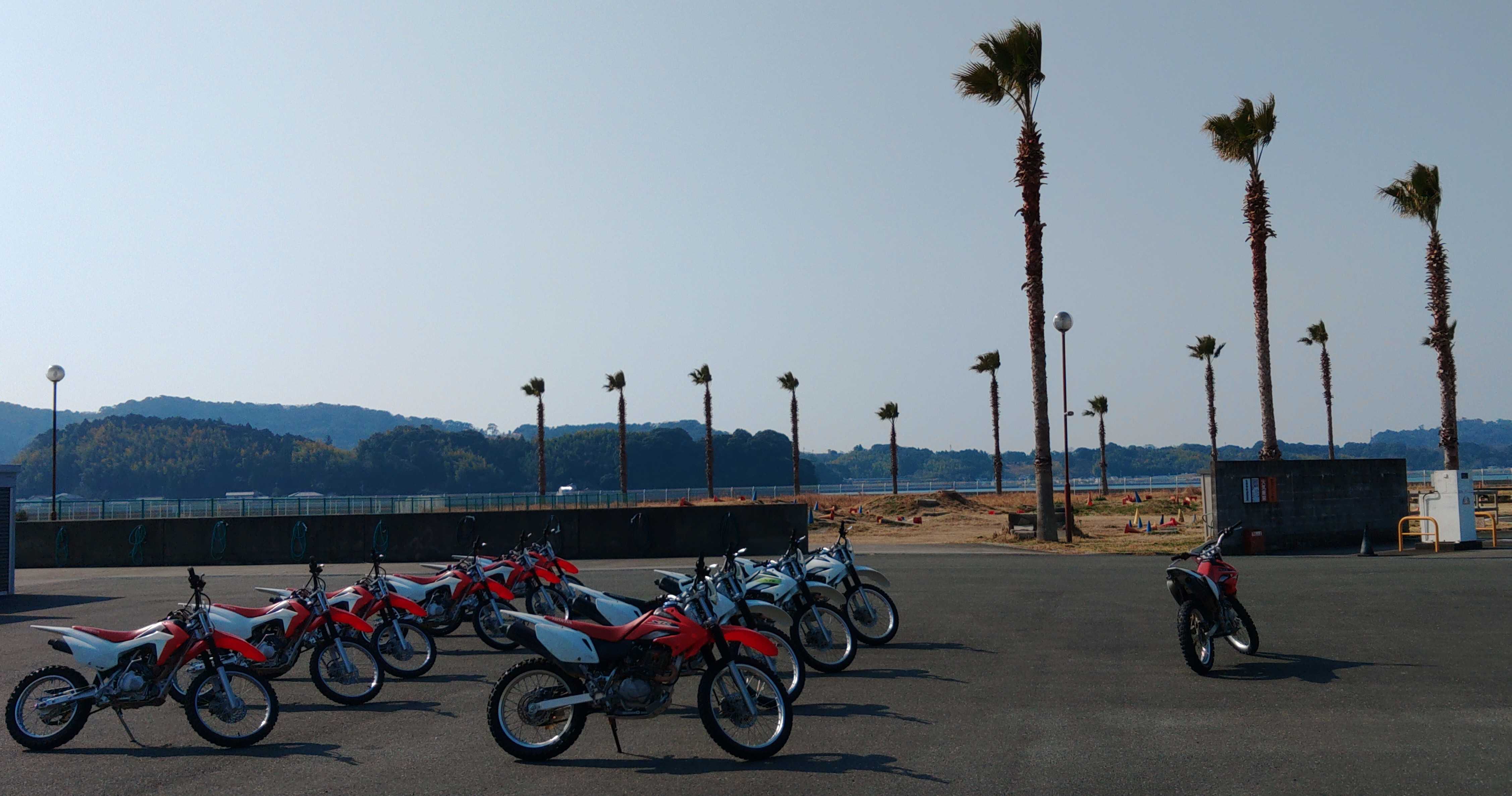 今日は気温が20℃を超える予報だったので、インナーは冷感の夏用をを着て練習しました。朝は風があり、寒いくらいだったのですが、午後からは汗をかきだしました。参加者は10名、バイクは230,イントラはK枝さん。正直、オフはあまり得意ではない様子ですが、勢いは強いです。最初はいつも通り、オンを少し走ってオフのストパイ+オフパイの肩慣らしコース。それでも結構ペースが早めの慣熟走行。初めて中級に参加の方もいて、結構辛そうだと思っていたら、各セクションで毎回転倒されていました。かく言う私も最終の練習でパイロンにフロントブレーキレバーをひっかけて、転倒しました。やはり125はタイヤも専用タイヤ(公道NG)だけあって、速い。230は公道タイヤだし、ブロックも減っているし、何といっても私の借りたバイクは2ndから1stへギアを替えようとしても、必ずニュートラルに入ってしまう。125は2ndで走り続ければOKなので、この差も大きい。まぁ、前に頭が行ってしまい、危ない走りになっているんだけどね。次回は来週、中上級です。