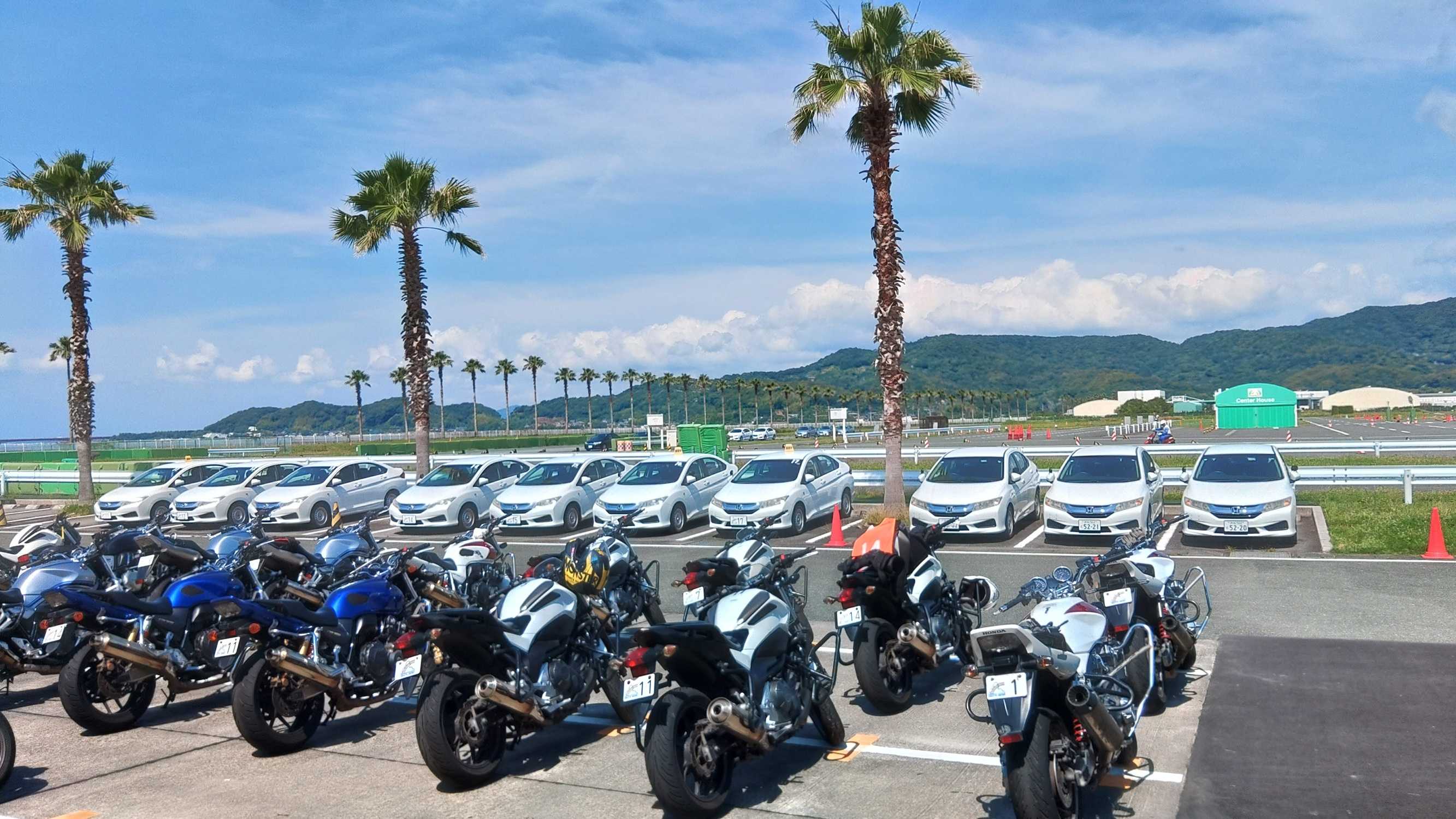 何だか久しぶりの中上級です。参加者は20名、イントラはメインW田さん、サブK村さん。天気は、気温は高めですが、湿度が低いので爽やかな1日でした。バイクは650です。荷重するのが難しいとはK村さんの弁でした。今日のテーマがW田さんより自己紹介のタイミングで発表され、「(ターン出口で)いい位置につく」ために練習しますとのこと。最初はターンするパイロンから少し離れた位置にパイロンを寝かして、出口側のパイロンの横で進行方向に向いてアクセル開けて膨らまないようにする練習から開始します。その後、荷重をかけてターン(これが最後までできなかった)する練習をしました。午後からはコーススラで、うまく荷重する練習を続けて、やっと何とか以前のように腰を入れることで荷重をかける感じを思い出しました。最後には5mピッチのオフセットでZ字ターンを続け、ここで右ターンの上体の遅れをW田さんから指摘を受け、確かに上体を少し先行するとターンが安定するようになりました。(確かに左はそこそこ安定していた気がしました)55kmほど走行しました。