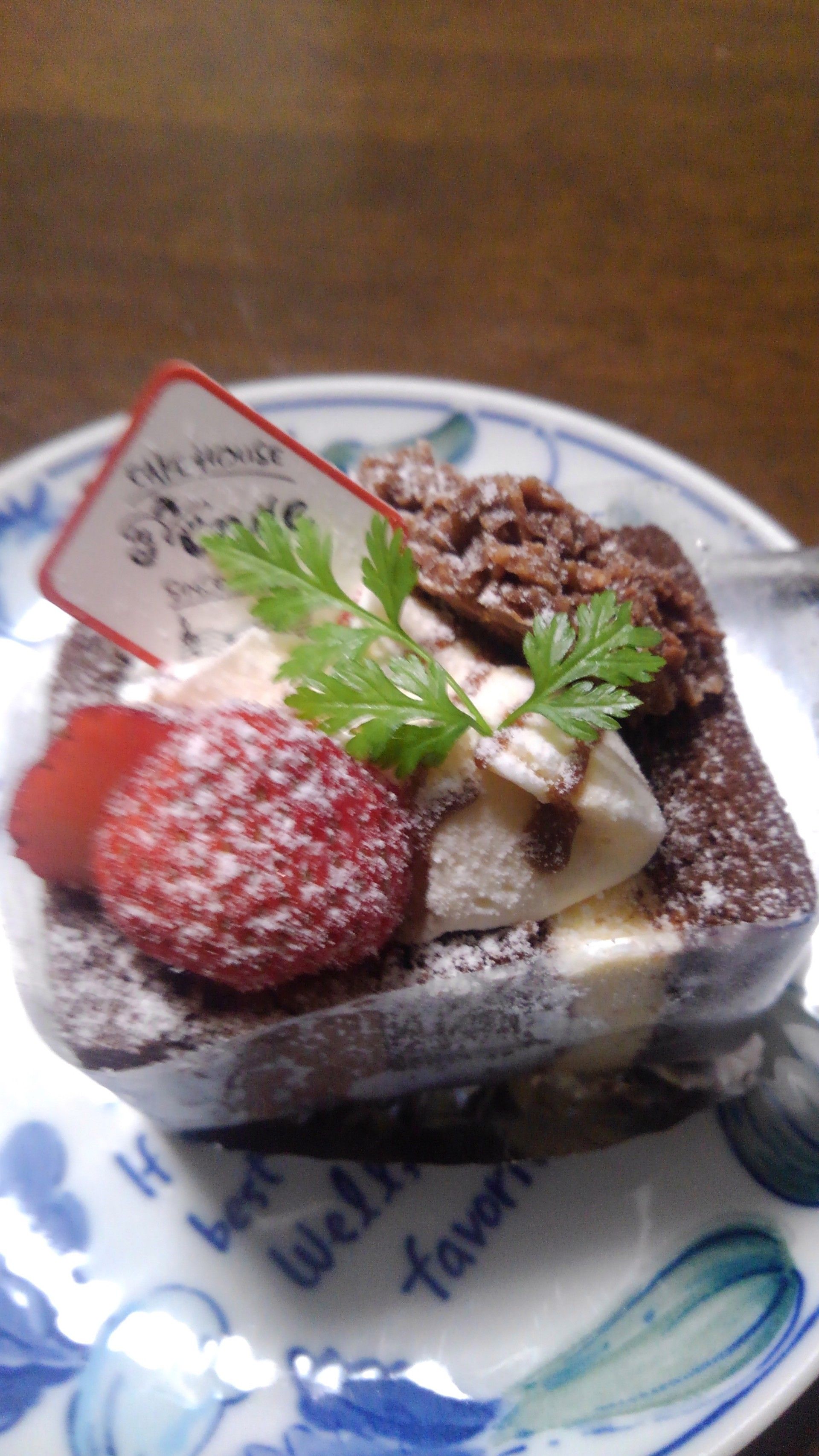 今夜はとりあえずチョコ系の「石畳」と名付けられたケーキを食べました。