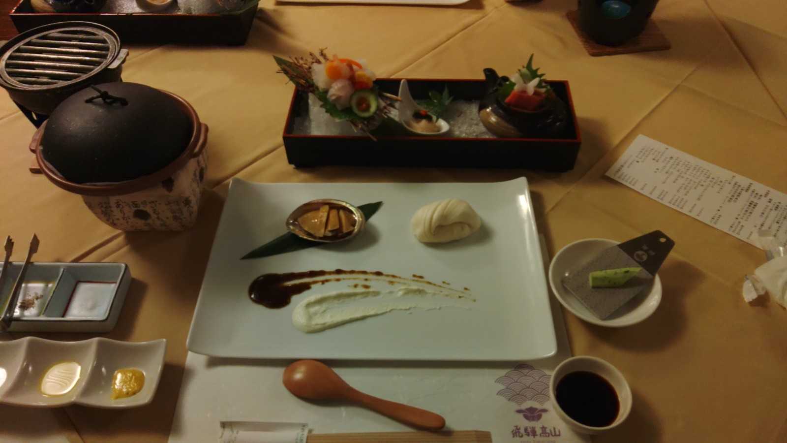 夕食は飛騨牛食べ比べ懐石的な食事で、後半に脂ののった和牛を食べたので、結構胃にもたれる感じでした。