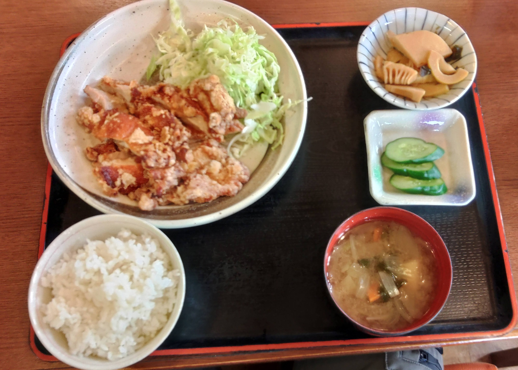 ここでは郷土料理「山賊揚げ定食」をいただきました。