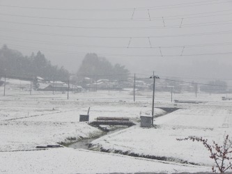 朝、銀世界!わた雪。積雪5センチくらい。 我が家からの昼時の雪景色。随分解けた。 この時期の積雪は、仙台で30年ぶりという。酵素起動路のあちこちで通行止めとなった。 東京では1969(S.44)年と同じ遅い記録となったようだ。 (あれは新人のころ、川崎にいて子どもたちと雪合戦をしたこと、電車が遅れるなど大騒ぎをしたことを覚えている。) なごり雪になるといいなぁ~ 今日、「タカ」の施設では花見。雪の花見となった。 夕方、迎えに行く。