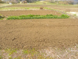 先日、近所のSさんにトラクターで畑を耕してもらった。 我が家の畑(借りている所)は、ずっとSさんに耕運をやってもらっていた。 ところが先月、Sさんは軽い心筋梗塞を起こして一週間入院してきたばかり。 もう今年からはだめだと思っていたところだった。 昨日のこと。 女房が好意に報いるために、例年より早めにジャガイモを植えようと言いだした。 それで、急遽種ジャガを買いに走った。 いつもだと、まだ残っている時期なのに近くのホームセンターでは完売でなくなっていた。 売り場では、毎年売れ残って最後は半額セールをするのにと驚いていた。 この春の野菜不足のためか? 仕方がないので、他のホームセンターで「男爵」と「北アカリ」の小袋を手に入れた。 「メークイン」は売り切れてなかった。 先ずは、コンポストの残さい堆肥を取り出す。肥料は、この堆肥。 次に、溝を掘る。これが一番の大仕事。先日の雨で、土が粘って鍬にくっつくのだ。 ひと鍬ごとに土を落とさないと進まないのだ。 掘ったところに女房が堆肥を入れ、土をかぶせて種ジャガを乗せていった。 やっと植え付け完了! これだけの作業をすれば、普通は汗をかくのだけれど全くなし。寒かった! 次の畑作業はあったかくなってからだ。