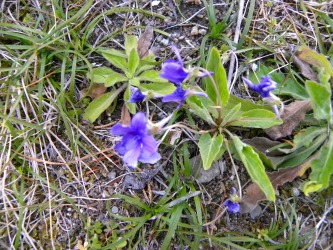 朝方も小雨。昨日の平地の雪は、すっかり解けた。 ようやく青空がのぞきだしたが、風は冷たい。 この土・日は「一目千本桜」見物のピークになる予定だったろうに、当てが外れたようだ。 観光バスの見物客の背中が丸まっている。 片隅の陽だまりでは「ノジスミレ」がほほえんでいた。 隣町に住むシンガーソングライターの吉川団十郎さん家の入り口の畑では「ソラマメ」の花が咲き出している。 春は出たり、引っ込んだり。