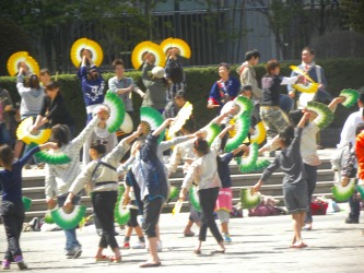 昨日の「公開授業」を参観するため、仙台駅から会場まで歩いた。 途中、県庁近くの勾当台公園の屋外ステージで、伊達政宗名物の「雀踊り」の練習を見学することができた。 小学生から中高校生くらいまでか。 なかなかハードである。 少し離れた所では、ストリートミュージシャンの若者たちが気持ちよさそうに歌っていた。 時おり拍手もわいていた。 地下鉄2駅半くらい往復歩いた。久しぶりに汗をかいた。 地下鉄運賃480円浮いた上に、いい運動ができた。 でも、最近あまり歩いていないので、少し疲れた。 これくらいで疲れていたのでは・・・と反省。 なんとか日課の中に、30分くらいの散歩を取り入れようと思う。