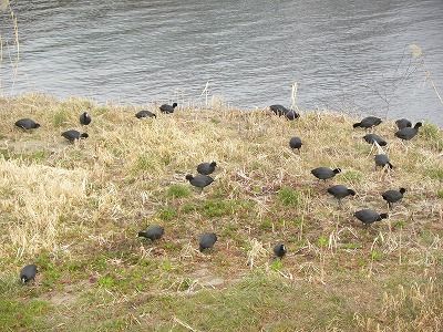 今年の3月中ごろ、大河原町の白石川の川原でオオバンの30羽ほどの群れを見かけていたので愛おしさを感じたのだった。