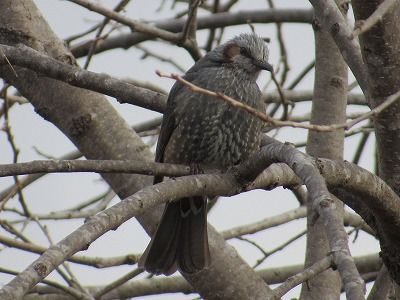庭のヤブツバキにヒヨドリのつがいが頻繁にやってくる。