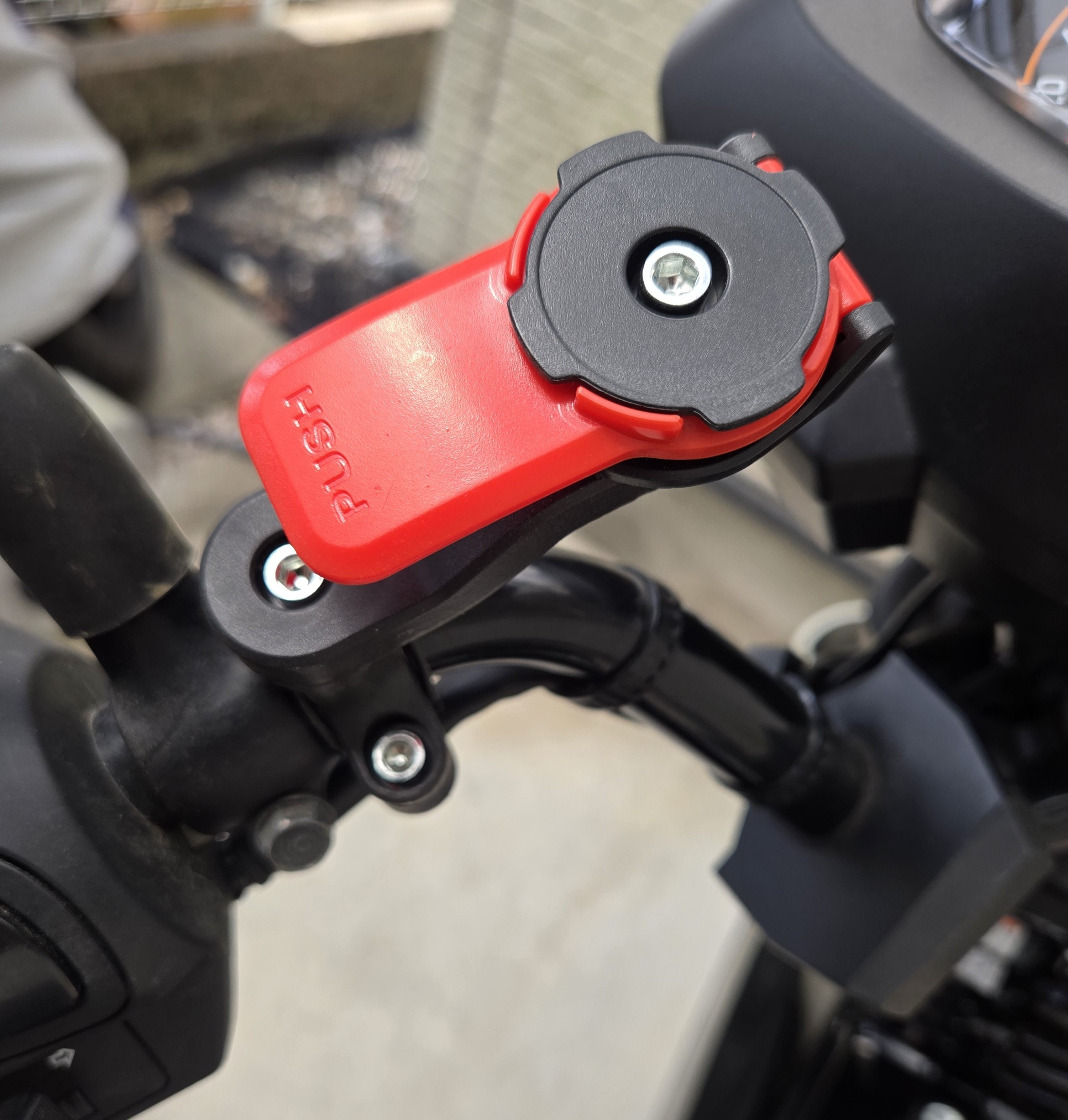 基本的にスマホケースは手帳タイプを利用しています。クレカや免許証を収納できるので便利なんですが、ツーリング時はケースを外してTPUケースを装着してます。今回はそれにアダプタ?を付けて装着するタイプ。こんな感じ。ケースだけですがこんな感じ。このスマホホルダーっておそらく本家のメーカーがあって数千円くらいで販売されてると思いますが、こちらはアリエクで数百円。夏の暑さで両面テープがどうなるか気になりますが、取り合えずこれで。
