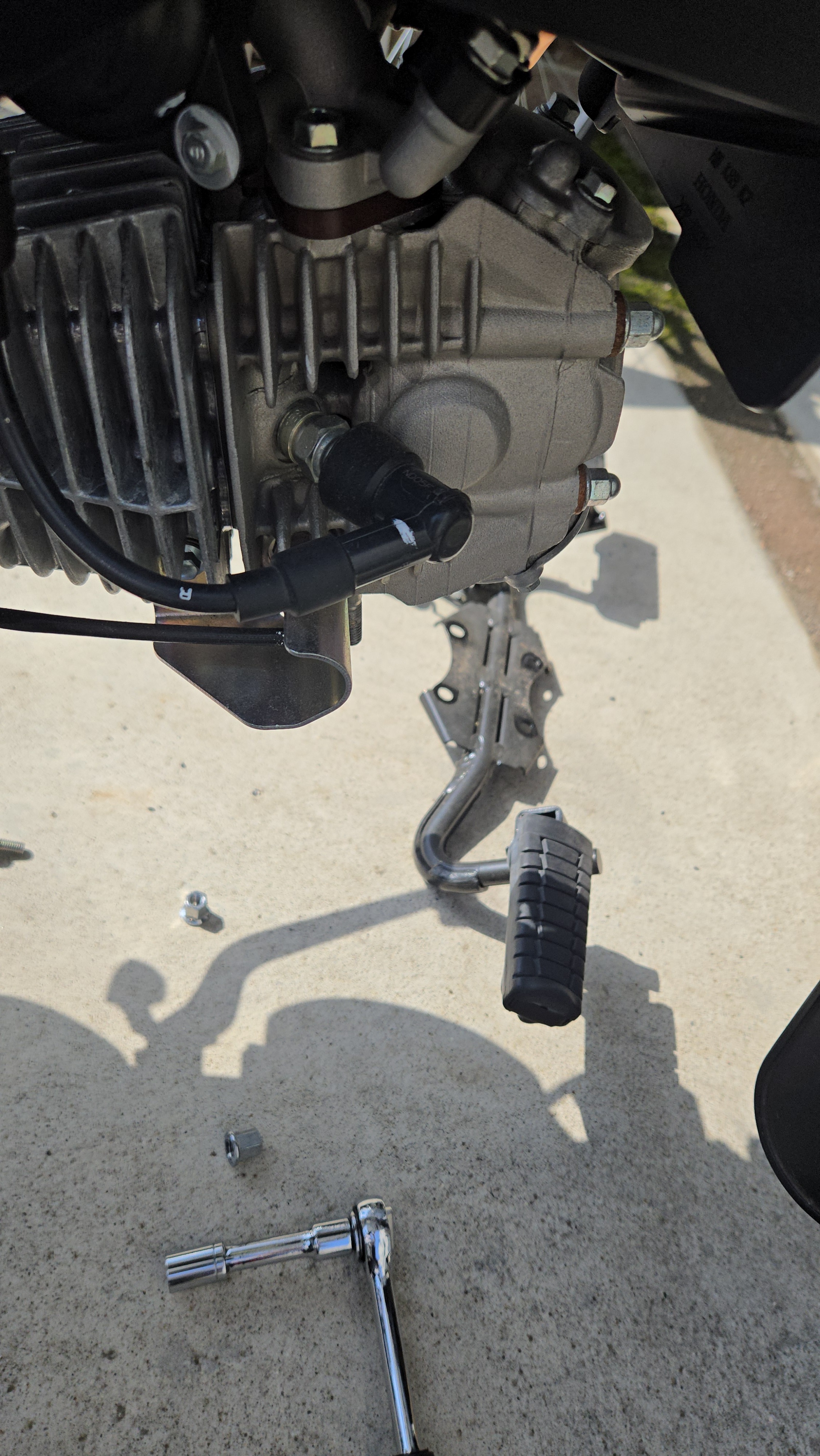先日購入していた格安マフラーを付けてみた。とりあえずステップを外して、はい。作業時間は15分弱。カスタム感はほとんどない。センタースタンドが干渉するとかしないとか書かれてますが、ミリ単位のクリアランス。センタースタンドから降ろすたびに「カーン」と当たるけど、走行中は問題ない。で、実際に装着してみての感想ですが、・パワー感の違いはよくわからない。・音は好みの問題だけど、低音の歯切れのいい音。 アクセルを開けて加速中は高いプリプリプリプリっていう音で鳴きますが。 アクセルオフのエンブレ中が一番良い音な気がする。結論、6980円(税・送料込み)の価格から考えるとかなり良い買い物。ヨシムラとか、モリワキみたいなブランド力とか見た目のインパクトは無いし、見た目のカスタム感も無いけどそれが良い。動画で撮ってみたけど、実際にフルフェイスのメット被って走らせた方が何倍も良く聞こえる。アイドリング中の動画価格も安いしお試しあれ。スーパーカブ110 クロスカブ JA44 JA45 JA60 マフラー カスタム メガホンマフラー ダウンマフラー インジェクション CUB 110 CC110 FI メッキ ブラック マフラー価格:6,980円(税込、送料無料) (2025/5/3時点) 楽天で購入
