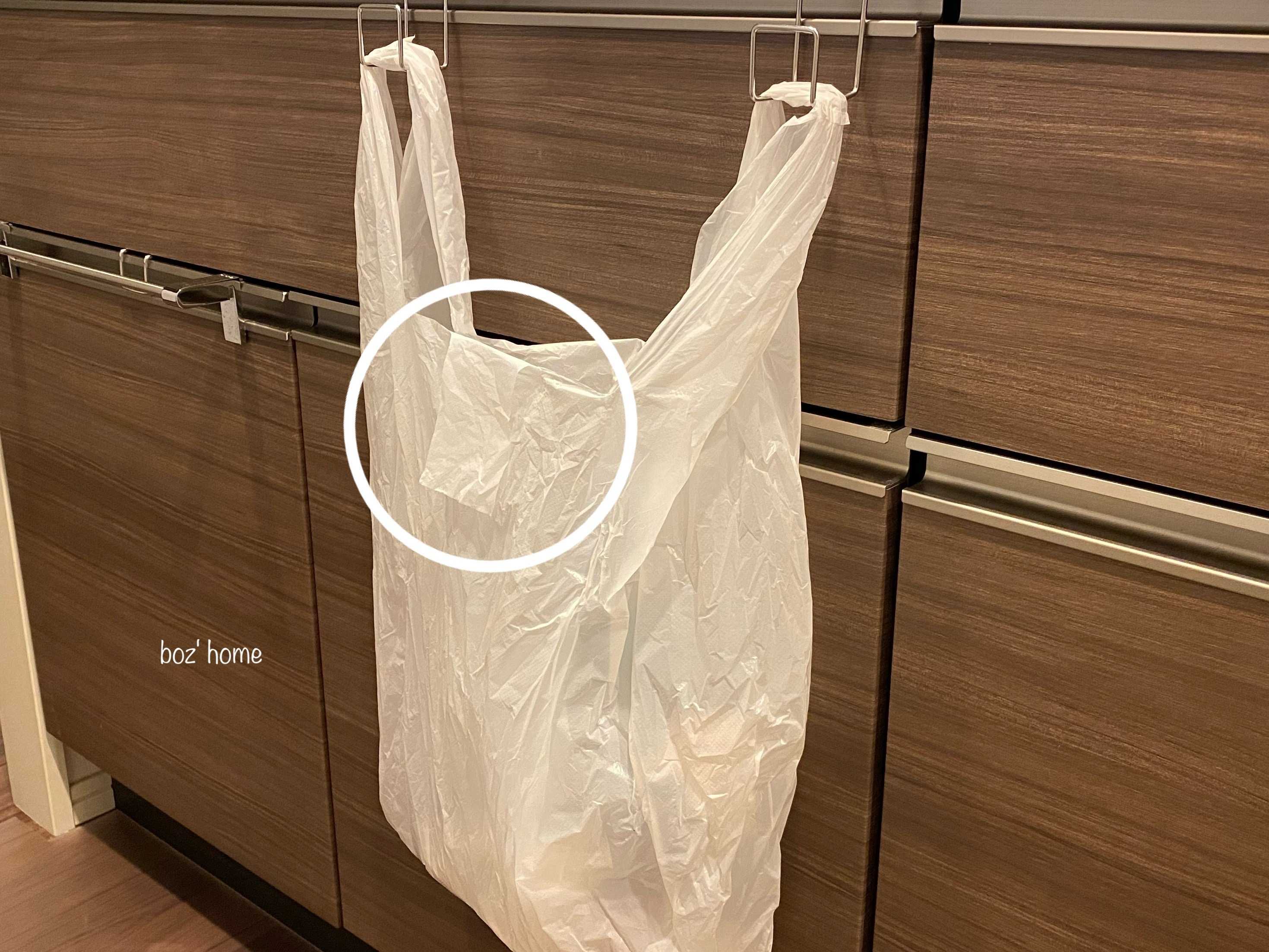 このピロピロ、なぜかゴミ袋の内側に折れます。