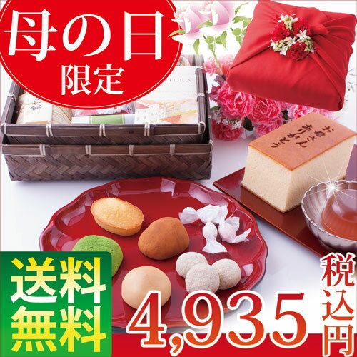 あす楽で母の日にまだ間に合うプレゼントを発見! 思わず注文しました^ ^ ラッピングも母の日仕様でステキです♪ 母の日 ギフト【送料無料】母の日 和菓子 八菓選・豪華風呂敷包かご盛セット 2014年§焼印入カステラとカーネーション付(造花)ご当地素材のお菓子8種類 ~幸せが広がりますように~【RCP】【母の日早割り】【母の日 プレゼント】