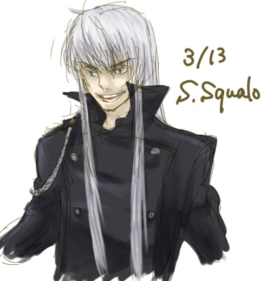 毎度のことながら季節の行事やら誕生日やら、そういうのは1日か数日酷いときには放置状態なので、ていうか大概やってねーですね、そういうわけで少し遅れたけどスクアーロですよ0時越しちゃったけど気分的にはまだ3月13日だからいいと思うんだ。テスト期間中に何やってんだって話ですがこういうのは飽きないうちにやったほうがね!今回は前に気になってたころよりはいくらかレベルうpしてますけど描く気があるうちに描いとけという寸法さ!相変わらず丁寧に描こうとかいう気はさらさら無いようです。いろんなところがゆがんでいるよ・・・髪が変なのとか線の汚さとか塗の汚さとか全体的な汚さとかもいつものことなので適当にスルーでていうか同時進行のほかの絵は線画から気合入れて描いたんだけどそしたら肩が・・・ああああそろそろ勉強・・・するわけねーYO・・・