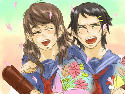 どうやら昨日は卒業式だったようで す が またしても寝てしまったよああああ!校長が 高校は中学4年とは違うのですよ気持ちを入れ替えて勉学に励みなさい というようなことを言っていたのですがきっとみんな中学4年的なそんな感じなんじゃないかな!来年からもほとんど同じ顔ぶれだしな!ていうか人生でたった一回の中学の卒業式なのになんだかなあ・・・卒業式のあと、まわりの女の子たちが肩を抱き合って泣いているのを見てようやく ああもう卒業なんだなあ と感じました。自分は泣かなかったというか泣けなかったというか・・・来年も似たような顔ぶれだからと思うとそれまでなんだろうけど思ってしまったもんは仕方ない別に薄情というわけでもないと思う、超主観的ですが教室で卒業証書をもらうとき先生がひとりひとりに何か一言言っていたんだけど、アレは金八先生のノリなのか?いや私は金八先生みたことないんですが親がそんなことをいっていたよそれにしても私に対するコメントがメリ氏とT氏と同じにおいがする、ですって な ん じ ゃ そ り ゃ思い返すほどのこともなくだらだらしただけの中学校生活だった気がしますが数少ない友人たちのお陰でなかなか楽しく過ごせました。高校でもよろしくお願いしますよほんともう君らがいないと一人ぼっちなんで!こんだけ卒業の話をしといてアレだけど、明後日追試で学校行かなきゃならないんだ☆