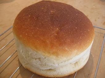 minominoさんのブログで良く拝見してずーっと憧れていたエンゼル型がようやく届きました♪初めて焼いたのはやっぱりminominoさんの所で良くお見かけした緑茶甘納豆パン♪みかさんの緑茶のちぎりパンを白神こだま酵母とはるゆたかブレンドで作りました。でもね。気になることが。。。型に付いていた紙に「抹茶入りのケーキには使用しないで下さい。」え??抹茶はだめ??緑茶はいいの??気になりつつも焼いちゃいましたが実際どうなんでしょう。ご存じの方、教えて下さい~。新しい型はテフロンがすばらしく効いていていつも通りに網の上に返そうとしたらつるっとパンがすべり落ちてばらばらに割れちゃいました。。。見栄えはいまいちになってしまいましたがほんのり緑色の生地がきれいで口に入れるとふんわり緑茶の香りがおいしいパンでした♪おやつにおいしく頂きました~