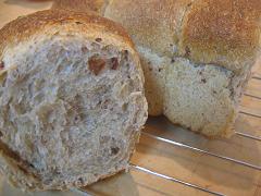 先日も作った↓の本の五穀豊穣食パン(私の場合は五穀じゃないけれど)味もさることながら日頃便秘がちな息子もこれを食べるとお通じがとても良いのでお気に入りです。レーズンを入れたらおいしそうだなぁと思い早速作ってみました。レーズンを熱湯につけて粗みじんにして入れてみたらあらら?香ばしい香りが消えちゃった。ほんのり雑穀の香りがするようなレーズンの香りがするようなまあこれはこれでおいしいけれど想像していた味とは違いました。。。粗みじんにしないでそのまま入れた方が良かったかな。次回もう一度挑戦しま~す。