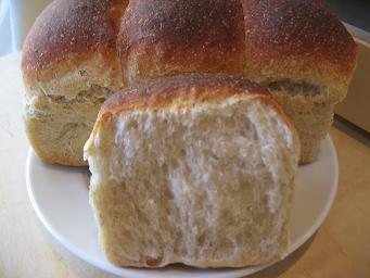 昨日は↓の本の五穀豊穣食パンを焼いてみました。人気のパンと書かれると、焼きたくなっちゃいます。本当は強力粉、ライ麦粉、麦こがし、オートミール、小麦胚芽が入るのですがライ麦粉と小麦胚芽はないので代わりに(なっていないかな?)全粒粉を使いましたよ。焼きたてを食べたら麦こがしの香ばしい香りがふわ~っとしてとってもおいしいパンです♪これにレーズン入れたらおいしそう~♪今日トーストして食べてみたら昨日は存在感のなかったオートミールの味がしました。違った味が楽しめてお得な気分です。