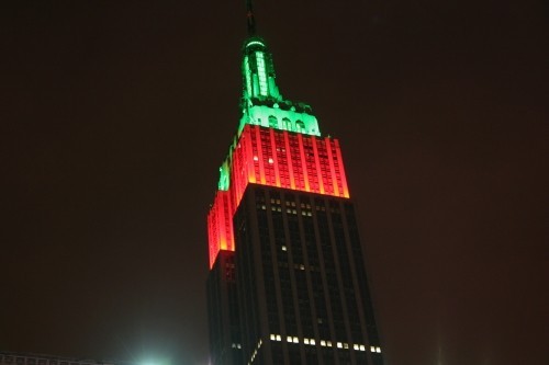 メリークリスマス!皆さんは、クリスマス・イヴはいかがお過ごしでしたか?2日前くらいの、エンパイアステートビルのライトアップは、クリスマス・カラーになっていました☆サンタさん、モミの木の色ですね~。