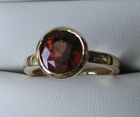 (写真ではちょっと暗っぽく写っています~。実際の宝石の色はオレンジと褐色が混ざったような色で、輝きが素晴らしい珍しい宝石です☆)