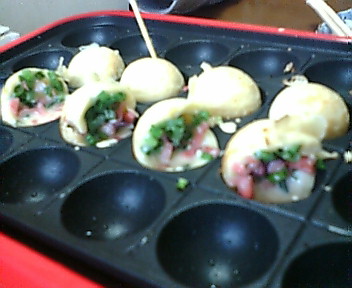 この前、NHKの番組でおいしい「たこやき」作りを妻が寝転びながら見ていた。なんとなく見ていたら、自分でもできそうな気がしてきて、急に「たこやく機」が欲しくなった。YAMAZEN たこ焼き器(着脱プレート式)SOPX-1180 レッドテレビ放送が終わった後に気のせいか売り切れが多く感じた・・・。きっとみんなこの週末に作るんだと勝手に想像。ポイントは、たこやきのまわりをサクッとさせるには生地に氷をいれて冷やすこと。もうひとつは、たこやきの中に空洞を作ること。そうすると、中がじゅわっとジューシーな感じになるようだ。焼くときに、最初から丸くするのではなく、少し焼けたら90度に傾けて焼いて、そしたら少し生地を追加してまた傾けるように焼いていくと中が空洞になるみたい。実践したところ、どうしても口をあけたパックマンになってしまう・・・。1回目は一回りちいさい「たこ焼き」ができあがった。焼き加減もちゃんと焼けていない。おいしいとか以前の問題であった。2回目は6個だけ焼く。あまり多いと面倒見れないと妻が言う。数が少なかったので集中して焼けた。なかなかおいしかったが、パックマン焼きのため、穴がふさがりきっていない。また、生地の小麦粉が少ないようで、もちもち感ではなくジューシー感ばかりだった。次回のために、生地に小麦粉を追加。3回目は8個を焼き。少しなれたので、面倒見れる数が増えた。今度は穴が開かずにきれいな球体を作ることができた。すごくおいしい。4回目は3個焼き。残念ながらたこも生地もなくなったので3個しか作れない。しかしながらかなりの完成度。妻も満足のたこ焼きが完成。作るのも楽しかった。