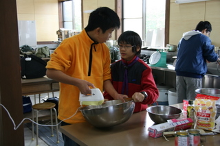 今日は、ぷっち隊集会でした。晴天に恵まれ、最高のコンディションでした。今回は、クリスマスケーキとクリスマスリース作りをしました。ケーキは、電気オーブンと段ボールオーブンで作ります。チームに分かれての作業。ケーキチーム、段ボールチーム、リースの材料調達チーム。まずはケーキのネタ作り。泡立てていきます。ブッシュドノエルを作るので、そのための型を作ります。型から作るんですよ~。すごいですね~。型は、新聞とアルミホイルで作ります。こちらも黄身を泡立てていきます。トッピング用のフルーツも用意します。段ボールオーブンも、ちゃくちゃくと制作されていきます。こちらは、クリスマスリースチーム。リースの材料を集めています。サボっています。こちらはもうすぐ完成です。スポンジをマキマキしていきます。かんせ~~~~~い。実に完成度が高い。ブッシュドノエルは、スポンジ自身が薄いので、焼き上がりが早いです。こういう活動ではお勧めです。しかも、見栄えもいいし、分けるのも楽。混ぜてもらいました・・・。みんなで美味しく頂きました。これで半分の人数。やっぱ、うちの隊は人数が多いや・・・。それで、あっと言う間になくなってしまったのでありました。いやはや、おいしかったです。それから、クリスマスリースを作りました。クリスマスリースチームがもってきた材料を、マキマキしていきます。こちらは、ドングリや松ぼっくり、そして、マカロニに色を付けています。マカロニは、かわいい形があるので、それに色を塗るといい感じの小物になります。いい感じです。私は、超大型の物を作りました~。赤ちゃんもすっぽり入るくらい大きいんです~。うちのむすめ達。かわいい~~~( ^ー゜)bそして、完成度が高い。女の子よね~。そして、うちのアーティストが作ったのがこれ、残念ながら、この写真では、作り込み、センスが伝わりません。残念です。いい作品だったんだけどな~。今日は、これで終わり。今月は、クリスマスに合わせてケーキ作りにするか、正月に合わせて餅つきにするか悩んだ結果、両方する事になりました。何か、宿泊しないとものすごく楽ね。これで終わりか~~って、感じ。ま、ぷっち隊集会だからそれでいいんだけど。それにしても楽しい一日でした。今度は餅つき。たのしみ~。