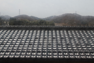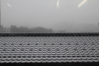 やっぱり春ですね。溶けるのも早い。屋根の上で、新雪が縞模様になっています。今、気温がとても低いです。桜が満開になるまで、あと1ヶ月はかかるかな~。