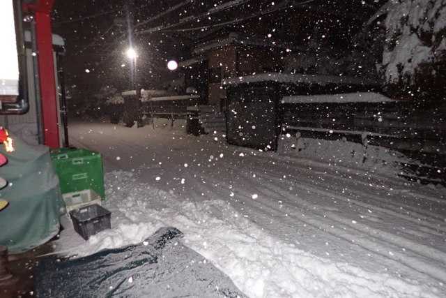 今日は寝倒しています。まだ昼だけど、ずっと同じでしょう。朝、雪を見に行ったら少なかった。いや、多いけど、昨日と変わらず出よかった。今日はきっと除雪車が入るので、それまでは寝ていよう。おお!雪国みたいな風景。多いけど、昨晩と変わっていない。とは言え、昨日ゼロにしたのにな。全くの無駄であった。今日の雪桜はきれいだ。まさに満開!青空なら、なおよかったのにな。大雪警報が注意報に変わった。峠は越えたかな。夕方からまたすごそうなので、明日の朝の通勤はパニックかもね。あれから4台も除雪車が来て、我が家の前を雪捨て場にがんばっていました。除雪していただけるのはありがたいですね~大きな山を作っています。入れ替わり立ち替わりで、合計4台の除雪車が我が家の前に。雪宿りをしてヤマドリかな?きれいになった瞬間これだけ積もって白くなった。家の前には大きな塊がゴロゴロ・・・雪山もでかい後は人力できれいにしました。重くて持ち上がらなくなる前に、塊を除去しました。なかなかの重労働だけど、いい運動になりました~。
