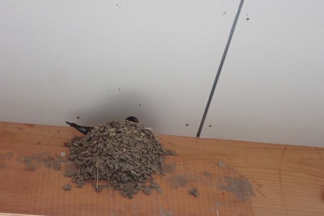 ツバメが卵を温めているようです。