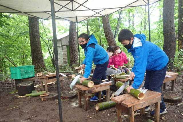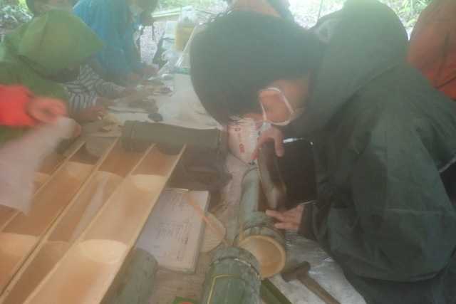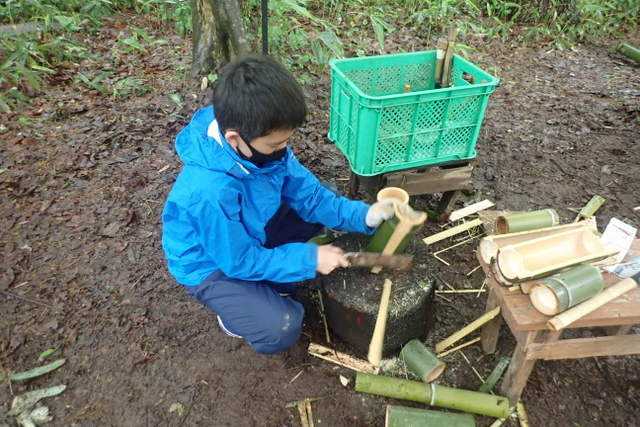 竹やぶバスターズができなかったので、準備した竹で、お椀、皿、はしを自作します。