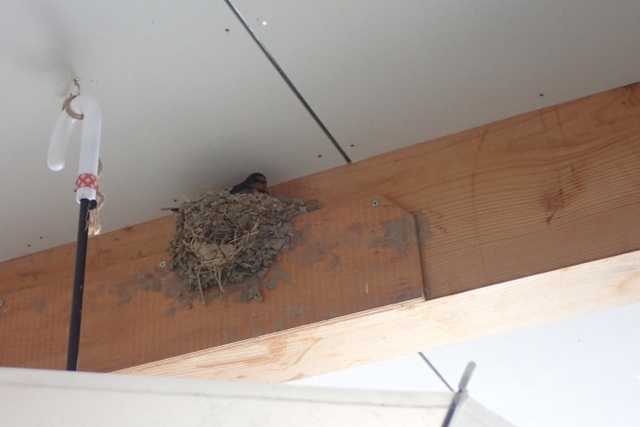 ツバメが卵を温めています。