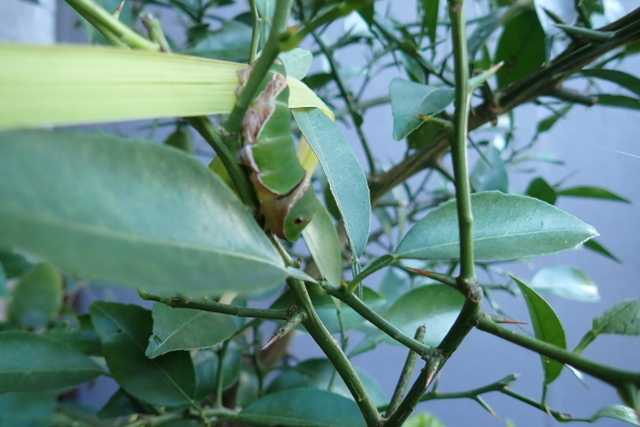 レモンの木に戻してあげたけど、模様からしてもうすぐサナギかな?