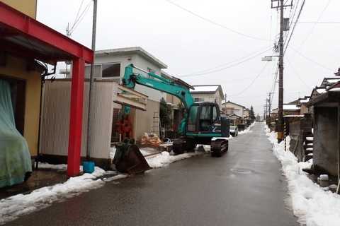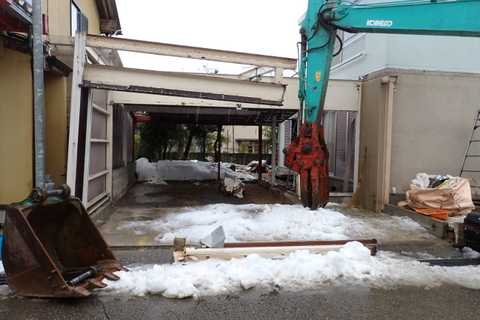 お隣の家の物置の解体が始まった。