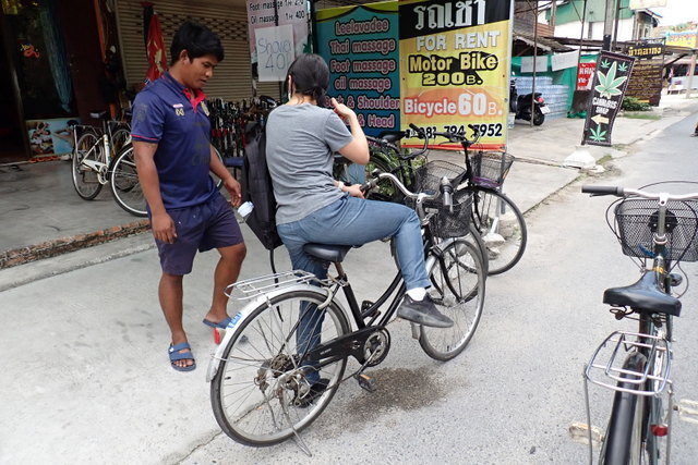 私たちは自転車で回りたいので、自転車を借りる。