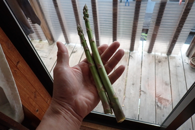 昨日採れたアスパラ初収穫。