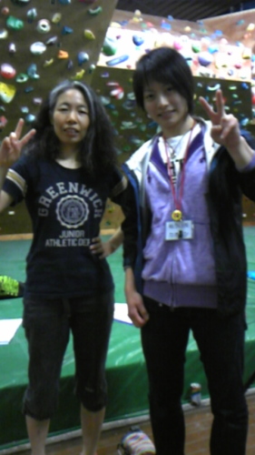 ゴールデンウィークを利用しての帰省。今回は、二日目に、群馬県太田市のクライミングジムOZを訪ねてきました。最初に(夫に)謝っておきましょう。「ごめんなさい」ジムへの地図忘れました。太田市内ヶ島の辺りは、ちょっとわかりにくいのを忘れておりました。車を走らせながら、携帯サイトと紙の地図を頼りに向かってはみたものの、迷うこと1時間。竜舞駅の辺りで電話で道を教えてもらい、ようやくOZに着くことができました。着いてしまえば何のことはなし。昔工場に通った道の途中だったという。。。(わかりやすい目印は、NTTの電波塔です)というわけで、カオリンさんの留守を守るイケメンスタッフさんに会員登録の手続きをしていただき、同伴した姪っ子共々、ジムの利用方法のガイダンスを受けました。その間、ジュリアと夫は付近を散歩。夕方から雨が降ったのでちょうどよかったです。この後、ジムに戻られたカオリンさんとジュリアの劇的な出会いがあったそうですが、詳しくは、夫にお尋ねください。さて、ガイダンスも終わり、姪っ子の様子を見ながら課題に取り組んでみたものの、最初のうちはアウェー感に負けて、足自由課題から抜け出せませんでした。実際、テクニカルかつパワーを要する課題が多いので、ホームジムより1級くらい、課題によっては2級ほど、難しく感じられます。更に、広い屋内に作られた開放感のある壁は、下から見ると高ーい。高所恐怖症というわけではないのですが、左足首を若干痛めているので、なかなか6級以上に手が出せずにいました。それでも、カオリンさんがジムに戻って、おやつタイムが過ぎた頃、とっくにパンプした腕で6級課題にトライしてみたら、意外と核心部の前後のホールドが良かったり、ゴールのリップが木製?で、安定感があったりで、緩い傾斜の課題は、取ることができました。あと、OZさんの課題は、シットスタート多めです。。ですから、体の重い大人は要注意。カオリン店長によると、子供たちでもスタートしやすくするためだとか。納得です。思えば、手ホールド4つで完結する、超ショート課題、保持するだけ、ゴールホールドが低い課題、トラバース課題なども充実しておりました。そして、お客さんも年齢層が若いです。私たち夫婦が、思いきり平均年齢を吊り上げてました(笑)とはいえ、若い元気なクライマーが多いとテンションもあがる。我慢できずに、若い子たちに声かけてお話しをさせてもらいました。みんな、はじめたばかりというのに、とてもうまいよ。早く自信もってコンペに出たり、外岩に踏み出して欲しいです。最後に、カオリン店長と壁をバックに記念写真を撮ってもらい、後ろ髪を引かれながらもOZを後にしました。またきます。というか、OZで登りたいから、帰省しちゃいますね、たぶん(笑)群馬県太田市は、西に向かうと双子山や三峰、北西には群馬、北東には栃木の岩場が近くとても利便性のいいジムです。水平ルーフを持つ立体壁や、高さのあるマントル壁もありますし、大人から子供までいろんなレベルの方が楽しめるジムだと思います。そして、店長のカオリンさんは、ショートカットに笑顔が素敵な、とびきりのベッピンさんです(^^)一見、男の世界に見えるジムの中も、リラクゼーションスペースには、ソファーや広いテーブルが置かれて、登り疲れたらゆっくり休むこともできます。多くのジムが休憩室を持ちながら、ゆったりくつろぐお客さんの姿を見ることは少ないのではないでしょうか。そして、女子更衣室のアメニティの充実ぶりには、驚かされました。これは、本命の彼女や奥様を連れていって、確認してみてくださいね。OZ店長のカオリンさん(右)とカオリンさんの後ろに見えるのが、マントル壁です。