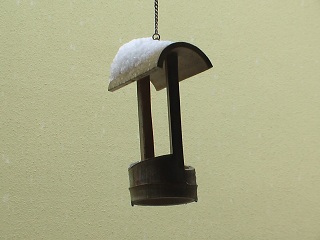 昨年の市民センター文化祭で購入した餌入れに、ここ数日お客さまが見えております。先日は、メジロ様が、本日のお客様は、シジュウカラ様でしょうか? メニューは、から付きひまわりの種の食べ放題でございます!またの来店をお待ちしております。