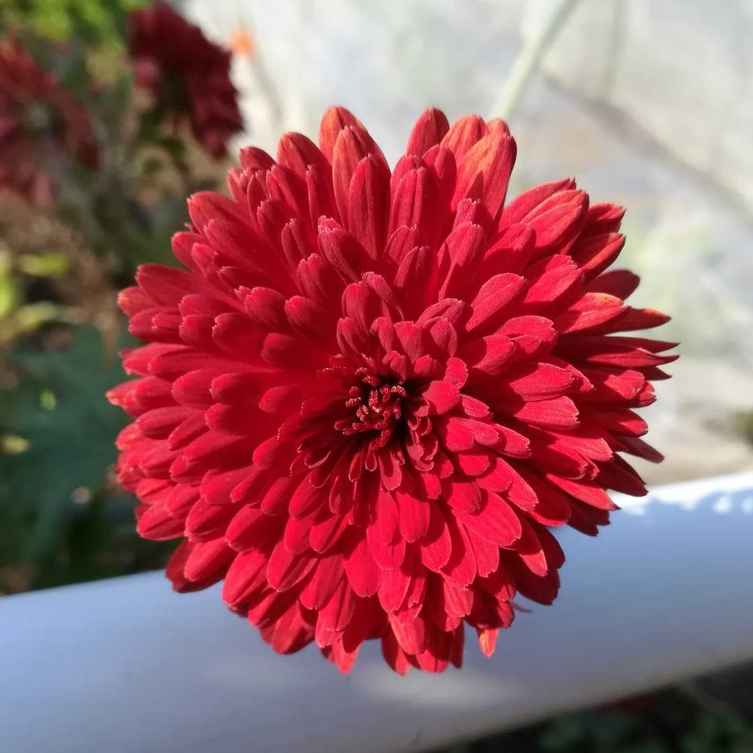 🌼 #中菊の花読みは、チュウギクです。東アジア 原産キク科 キク属 の多年草。小菊よりは大振りで、大輪の菊より小振りの中輪の菊の総称。小菊より花頭部の構成が複雑なものもあり、管咲き、八重咲き、丁字咲き、等、多様な品種があります。江戸時代に、品種改良が流行して江戸の街にて盛んに創られたので「江戸菊」の別名が付いてます。#中菊 #チュウギク別名#中輪菊 #チュウリンギク#江戸菊 #エドギク学名#chrysanthemum_morifolium英名#florists_daisy真っ赤な中菊です。菜園の脇に垣根の様に植えられておりました。花期は、09月〜11月 頃秋から晩秋まで咲くお花です。
