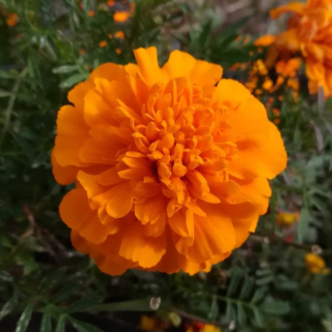 🌼 #マリーゴールドの花南米原産キク科 コウオウソウ属の一年草。但し一部に多年草、亜灌木、になるものもあります。アメリカ大陸の温帯〜熱帯域に掛けて約50種が分布しています。小振りの物をフレンチマリーゴールド大振りの物はアフリカンマリーゴールドと言ってはいますが、どちらのマリーゴールドも、フランスやアフリカ原産という事はまったく無く、メキシコ原産です。写真のお花はアフリカンマリーゴールドの方です。マリーゴールドは「聖母マリアの黄金のお花」と言う意味です。#マリーゴールド別名#アフリカンマリーゴールド#紅黄草 #コウオウソウ#孔雀草 #クジャクソウ#千寿菊 #センジュギク学名#tagetes英名#marigoldオレンジ色のマリーゴールドであります。そろそろ見掛けなくなって来ましたが、まだ残っておりました。花期は、04月〜10月と幅広く冬以外は咲くお花ですね。↓ 楽天ショップ販売店のピックアップです↓【てしまの苗】 コンパニオンプランツ マリーゴールド 実生苗 9cmポット 花苗アフリカンマリーゴールド 種子 高性大輪混合 5ml(育苗可能本数:およそ100本)