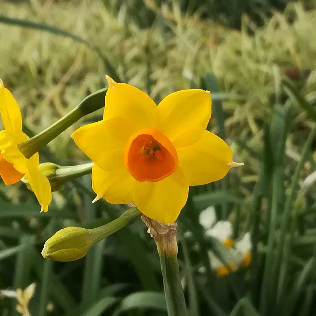 🌼 #黄房水仙の花読みはキブサスイセンです。中近東〜地中海沿岸部 原産ヒガンバナ科 スイセン属の多年草。黄水仙とイメージが被ってますが一応別種です、日本水仙を黄色に染めたみたいな形のこの水仙が黄房水仙です。黄水仙は草体がニラの様に細長くお花がやや小振りです。 よく観る黄色い水仙は、だいたいこちらの黄房水仙の方なのですが、イメージ的に黄水仙と呼ばれてしまう事が多い様ですね。ー ー ー☠ 有毒植物です。全草に亘りリコリンを始めとする有毒成分が多数含まれる為、絶対に口に入れない様にしましょう。有毒植物ではありますが、鱗茎部を薬として、腫れ物の鎮静剤にする場合もあるそうです。#黄房水仙 #キブサスイセン別名#房咲き水仙 #フサザキスイセン#グランドソレドール学名#narcissus_tazetta_odorus英名#grand_soleildor日本水仙に少し遅れて黄房水仙が咲き出しました。花期は、01月〜03月 頃。冬に咲くお花ですね