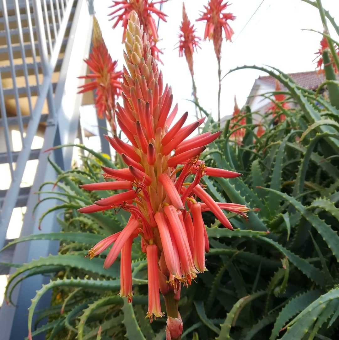 🌼 #木立蘆薈の花読みは、キダチアロエです。南アフリカ 原産ツルボラン亜科 アロエ属の多年草、及び低木。棘のある多肉質な葉が特徴の多肉植物ですね。日本でアロエと云うと、この「木立ちアロエ」と云う程一般的に植えられております。薬用植物であり、内服に、外用に、様々な効能がある万能薬です。但し余り取り過ぎるとお腹を下すそうですので、一日の摂取量は五百円硬貨くらいの大きさに控えるのが効果的だそうです。便秘気味の人は多めに摂取して効果を調整するのも良い、との事。非常に有用な植物でありますが子宮を縮ませる作用もあるので妊婦さんの服用はダメ🙅♂だそうですのでご注意を。#木立蘆薈 #キダチアロエ別名漢字は同文字で、#キダチロカイ学名#aloe_arborescens英名#aloeアロエの花も咲いておりました。花期は、12月〜02月 頃冬にお花を咲かせます。↓ 楽天ショップ販売店のピックアップです↓ハーブの苗/キダチアロエ(木立アロエ)5号鉢植え【アロエ属】キダチアロエ 5号ポット