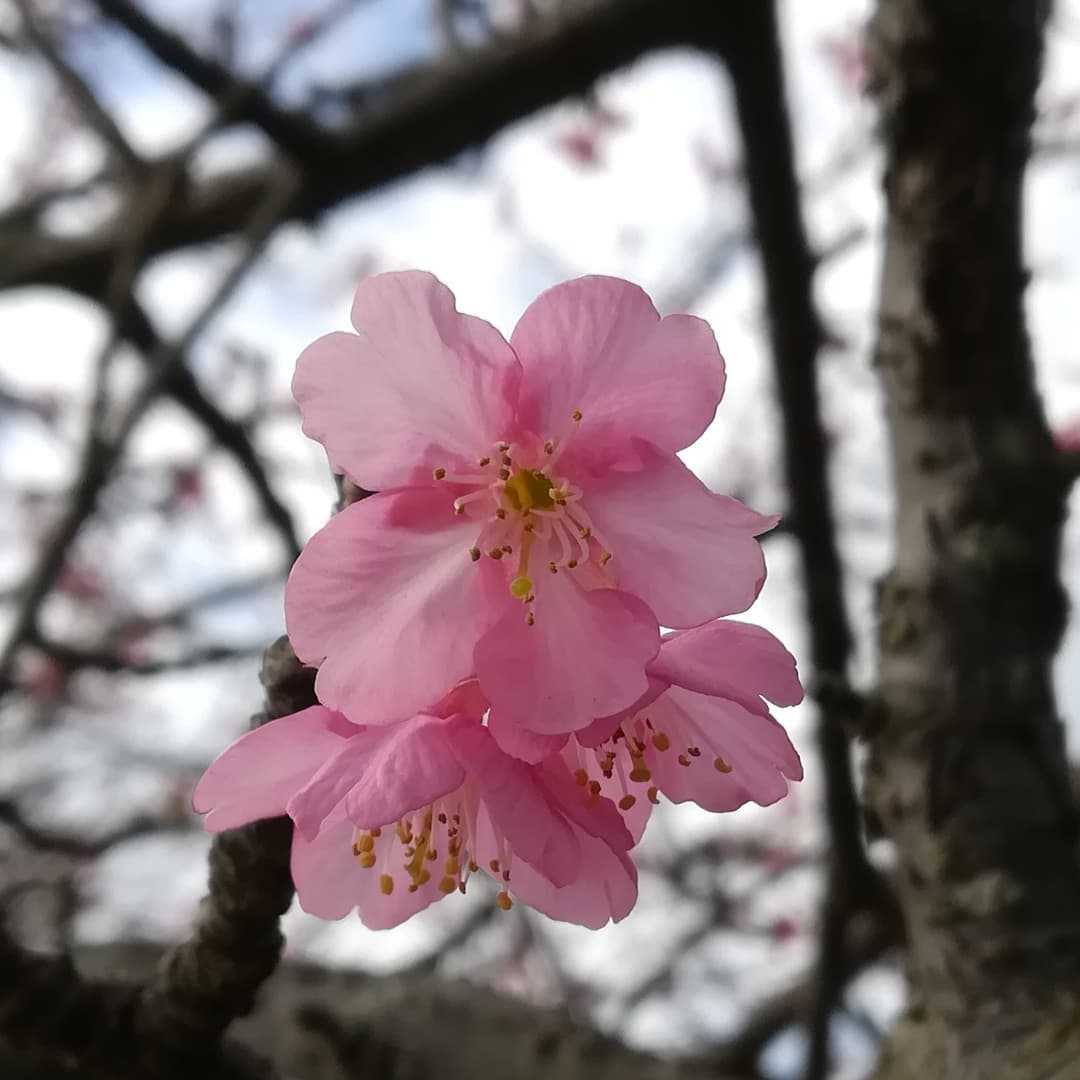 🌸 #河津桜の花読みは、カワヅザクラ です。日本 原産バラ科 サクラ属の 落葉亜高木。寒い2月頃から咲き始める早咲きの桜です。オオシマザクラとカンヒザクラが交配した品種に、更にカンヒザクラが交配した品種とされております。オオシマザクラの特徴の大輪の花とカンヒザクラのピンクの花弁が受継がれた、大輪ピンク色の桜です。1995年に静岡県賀茂郡河津町の飯田さんが河津川沿いの草地にて1m位の若木を発見し、持ち帰り庭に植樹。その後の学術調査により、新規の品種と判明し「河津桜」と命名。飯田さんのお宅には、この原木(推定樹齢50〜60年)がまだ元気に現存しているそうです。#河津桜 #カワヅザクラ別名#南桜 #ミナミザクラ学名#prunus_x_kanzakura英名無し神奈川県三浦市の京急線の沿線にある河津桜並木の河津桜です。陽当りの良い場所だと12月頃にポチポチと咲き始めるので探して撮影してまいりました。花期は、02月〜03月くらい早春に咲くお花です。稀に12月くらいに咲く事もある、との事。