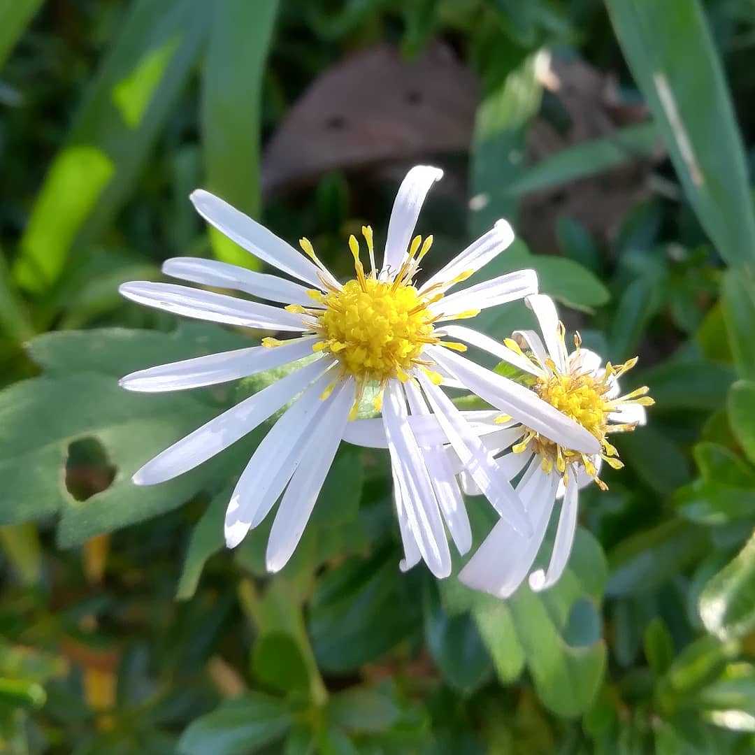 🌼 #田舎菊の花読みは、イナカギク。日本を含む東アジア 原産キク科 シオン属 の 耐寒性多年草。別名が山白菊となっていますが山白菊は、白嫁菜の別名として使われてる地域もあり、混迷するのであまり適切で無いそうです。片方を白嫁菜として、此方は田舎菊とするのが妥当ですね。このお花も、白嫁菜とそっくりさんで見分けるのが難しいですが、判別は嫁菜と野紺菊と同じく、冠毛の有無、葉のオモテ面の手触りで判別できます。冠毛が有るのが、田舎菊。冠毛が無いのが、白嫁菜。冠毛とは、タンポポの綿毛と同じ物です、田舎菊はお花の後に綿毛が残ります。葉のオモテ面がザラザラが、田舎菊。葉のオモテ面がスベスベが、白嫁菜。と云う感じです。#田舎菊 #イナカギク別名#山白菊 #ヤマシロギク学名#aster_ageratoides_ssp_amplexfolius英名無し山道の端で咲いていた野生の田舎菊です。園芸品種の物とは異なり舌状花がまばらですね。花期は09月〜11月 頃秋に咲くお花です。
