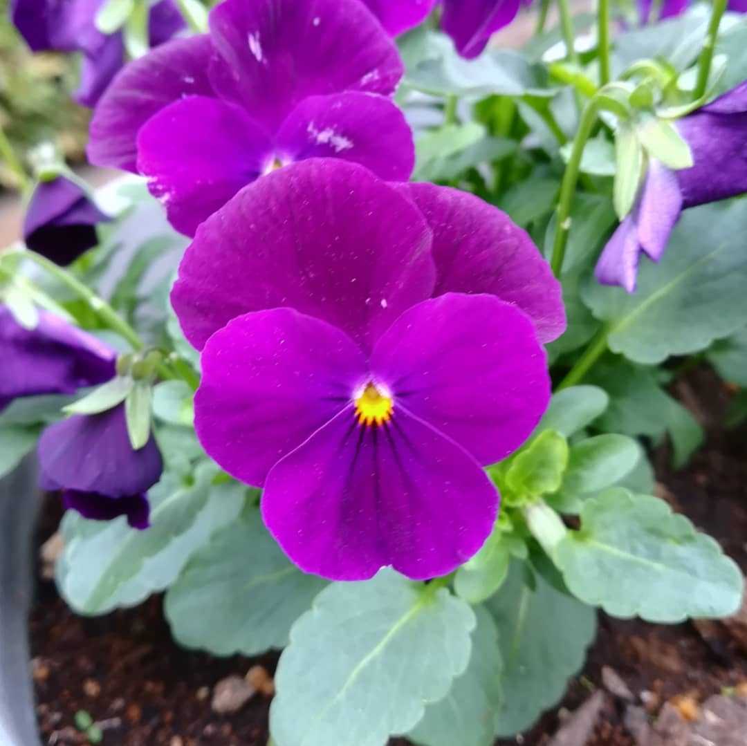 🌼 #パンジーの花欧州 原産スミレ科スミレ属の一年草。パンジーは、大型のスミレ属を創る為に品種改良をした結果出来た園芸品種です。お花の経が、約4cmを超える物がパンジーで、それ以下はビオラとなってます。但し、大きな括りではパンジーもスミレ科の総称としてのビオラに含まれる物なので、ビオラでもあります。パンジーとビオラは、学名が同じ「viola_wittrockiana」ですね。更に、日本的にはスミレ科の総称が、「菫」なので、菫でもあるのですね。エディブルフラワーとして、花弁を食べる事もありますが、毒のある植物でもあります。種子、根茎、には毒を含む為、基本的に食用は避けるのが無難でありますね。#パンジー別名#三色菫 #サンシキスミレ学名#viola_wittrockiana英名#pansy紫色のパンジーです。今の時期の花壇にはパンジーとビオラは必ずありますね。花期は10月〜05月 頃秋から春まで永く咲きます。