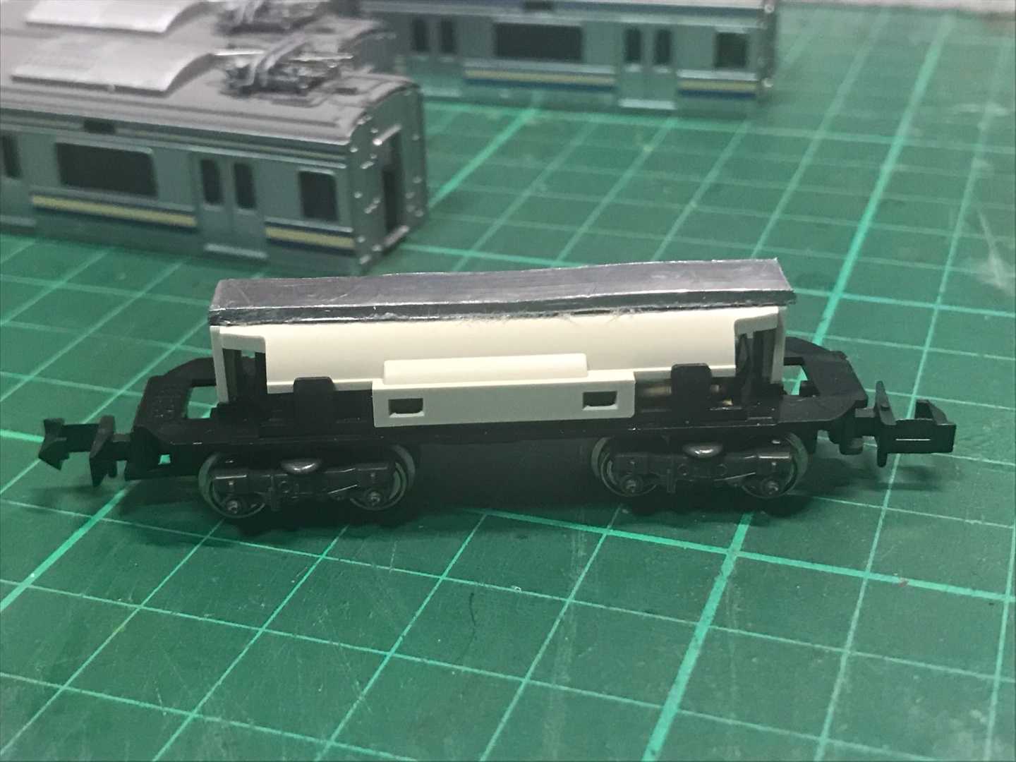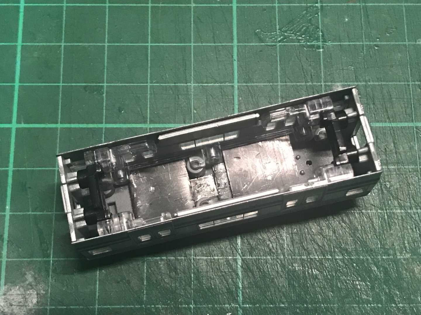 車両側の重りも、屋根と側面下側のみで、妻面の重りは撤去、見えない隙間の重りも撤去しました😅