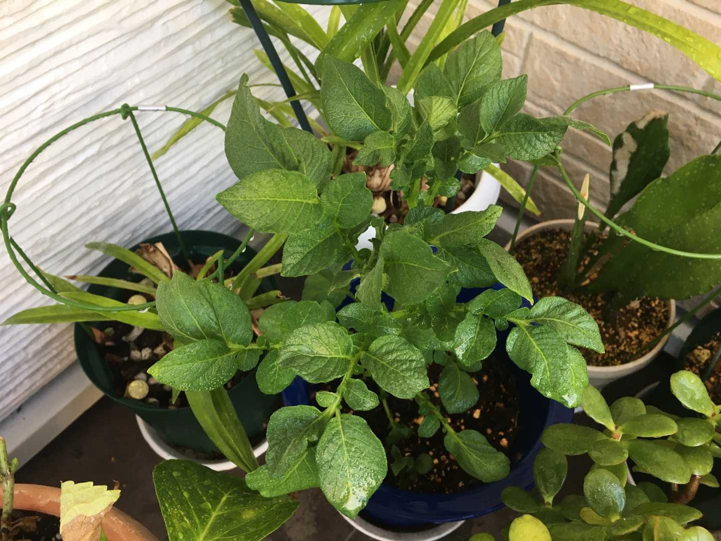 挿木に使った鉢、片付けないでいたらジャガイモがすくすく育ってました(笑)