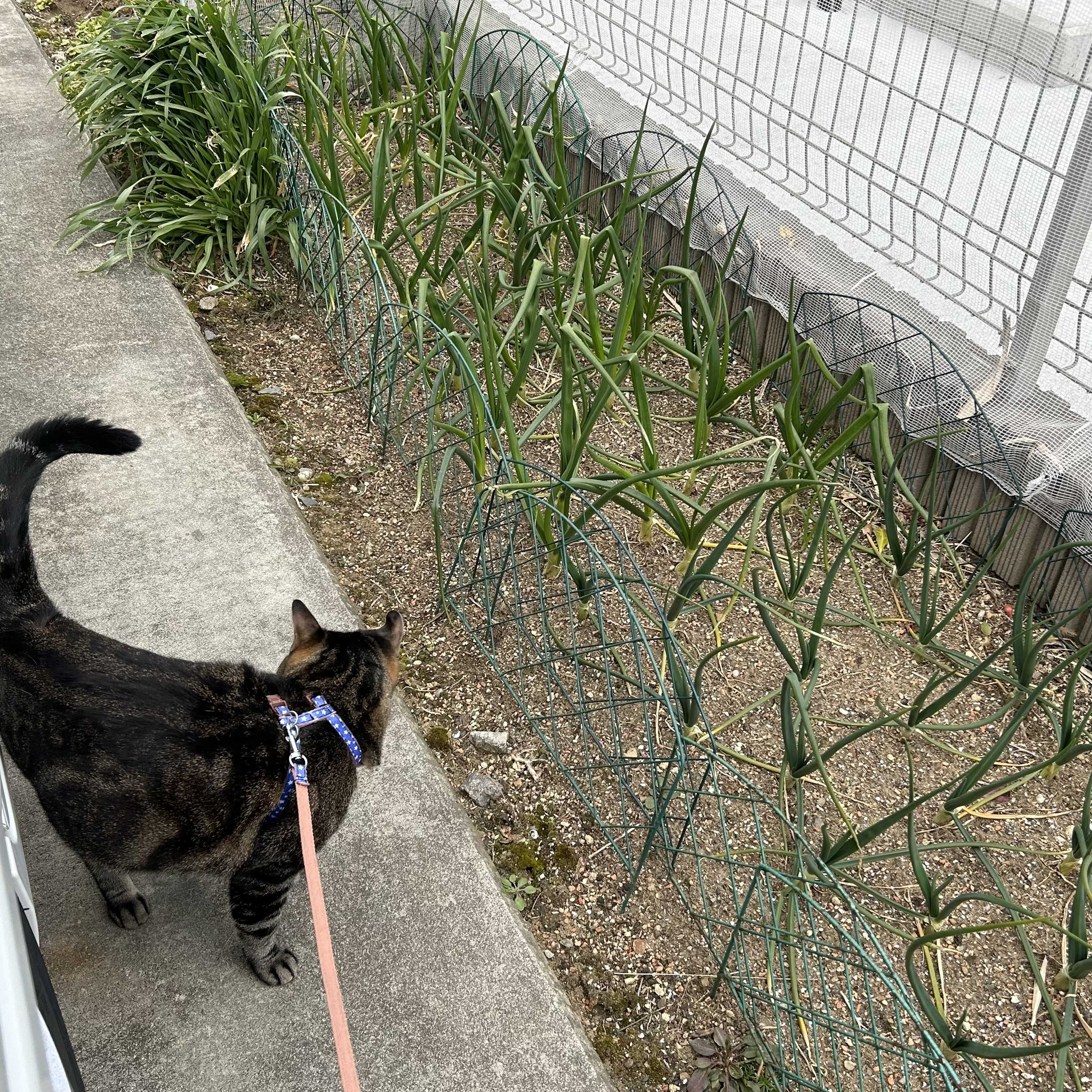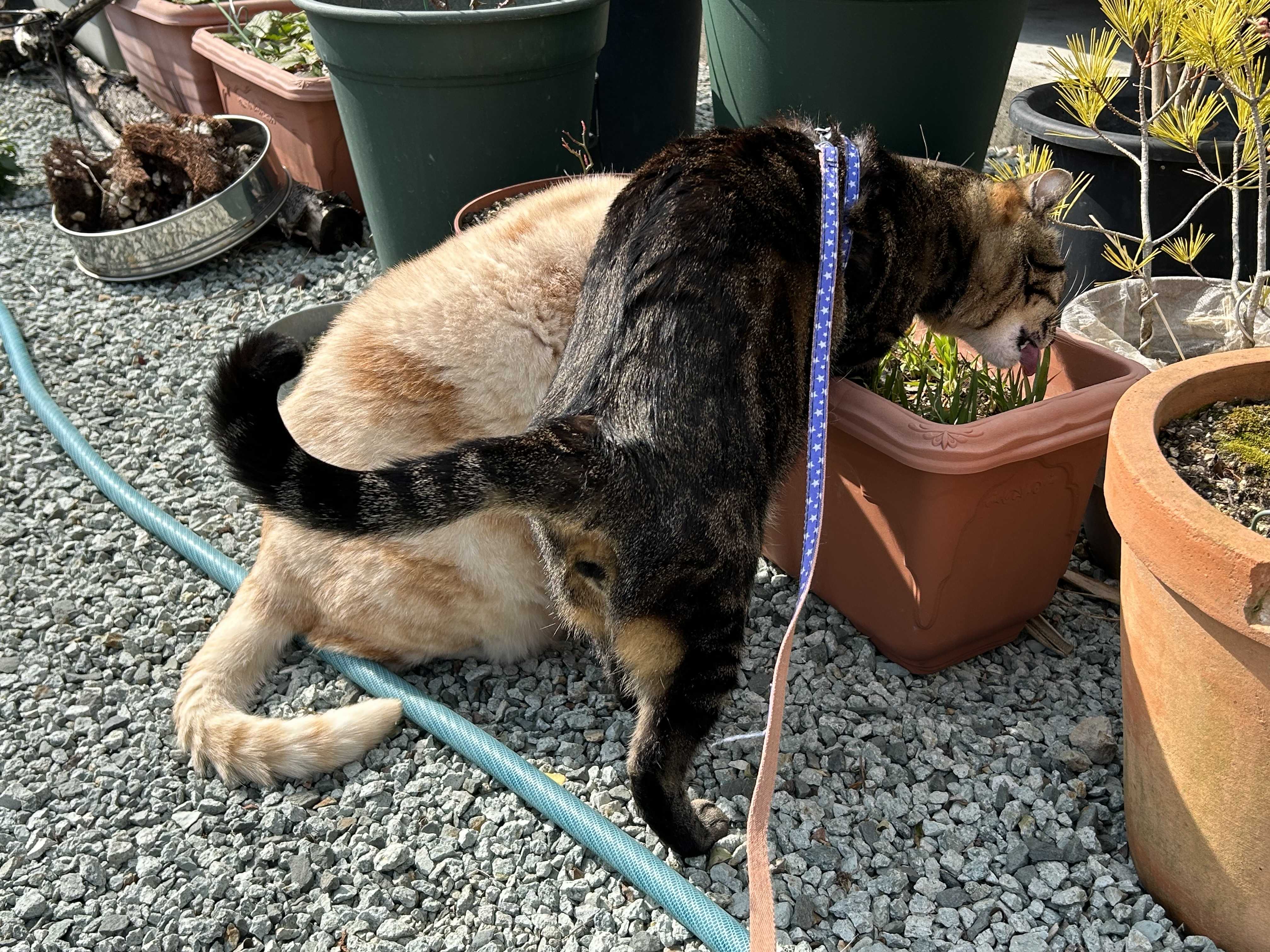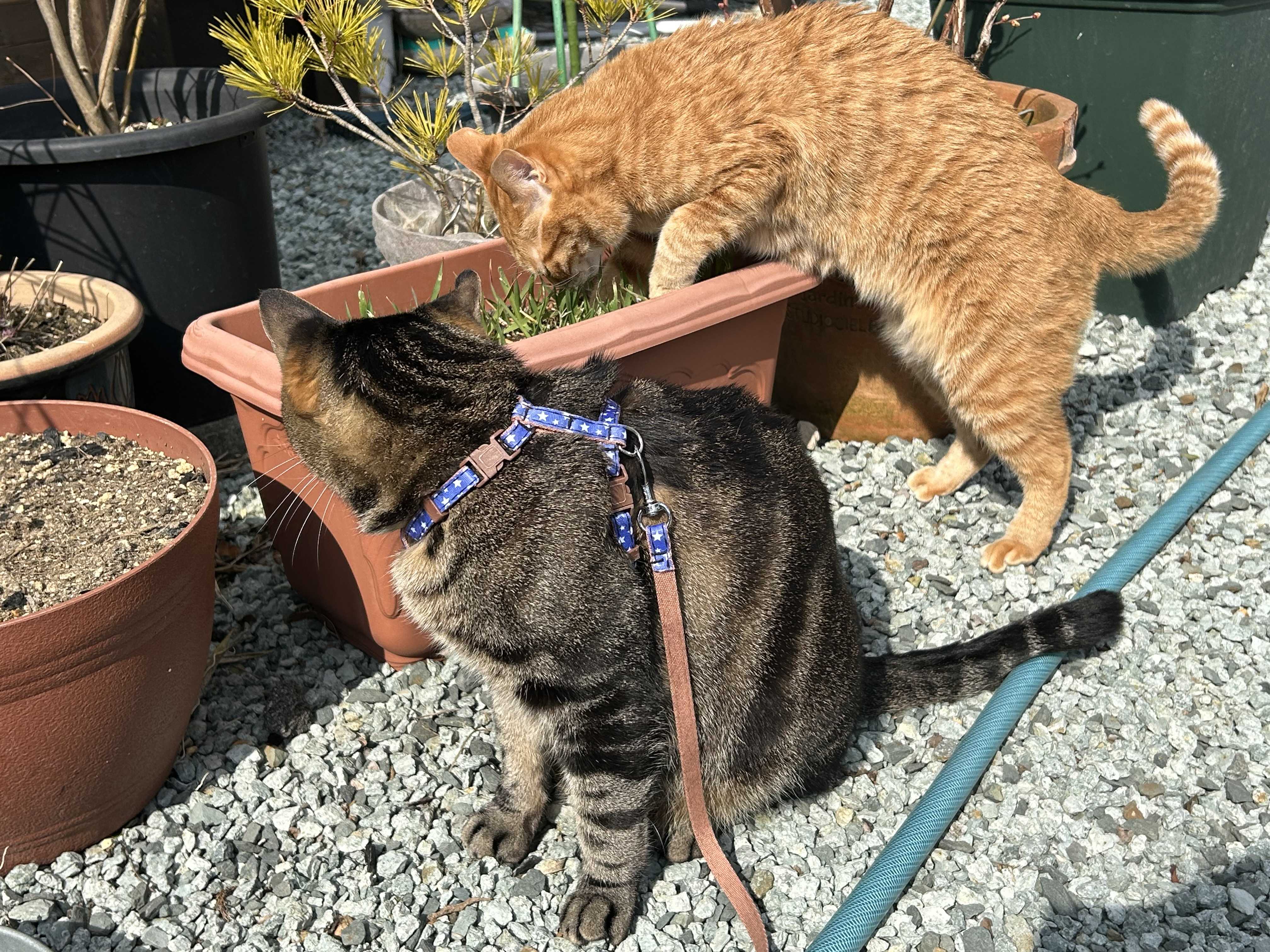 ニャンズのお散歩タイムに少し目についた雑草を抜くくらい。