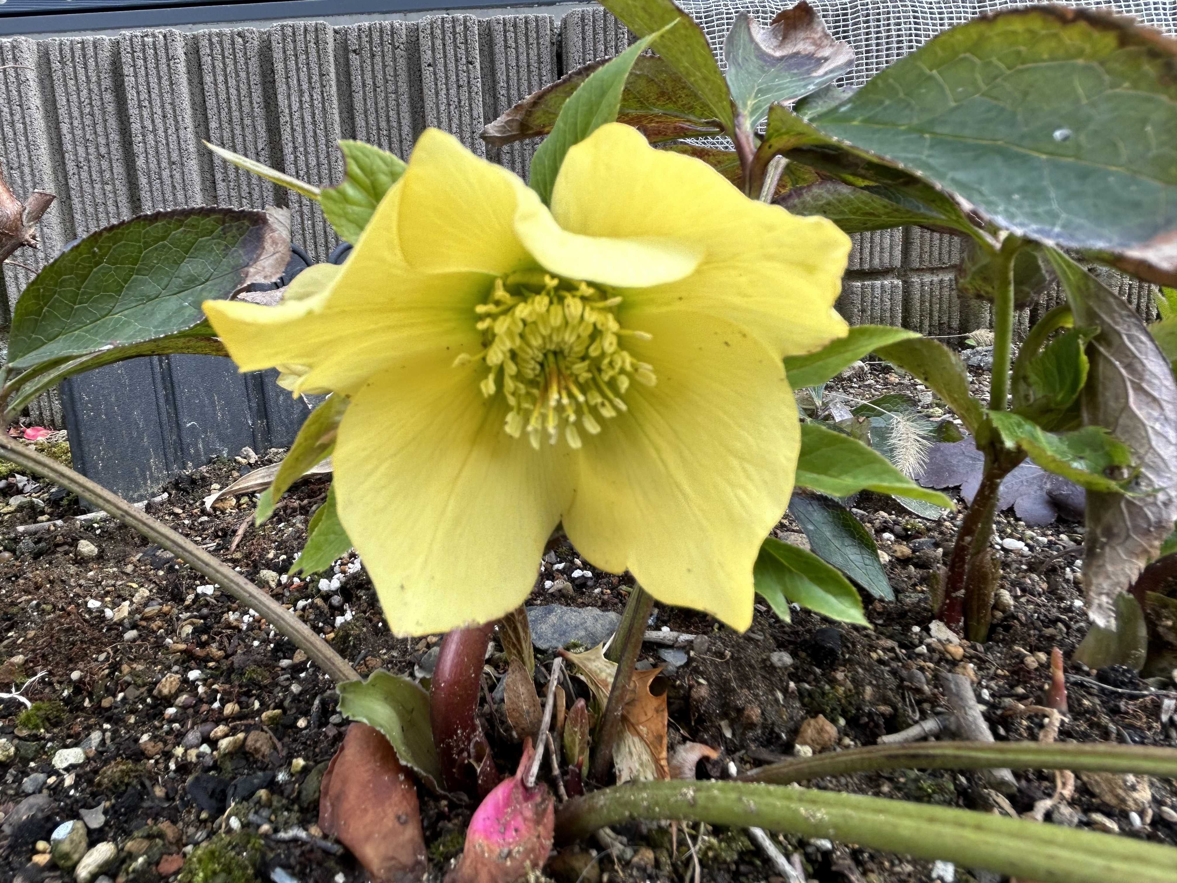 丈がなかなか伸びずにいたクリスマスローズも地面から少し顔をあげてきました。