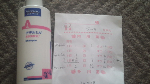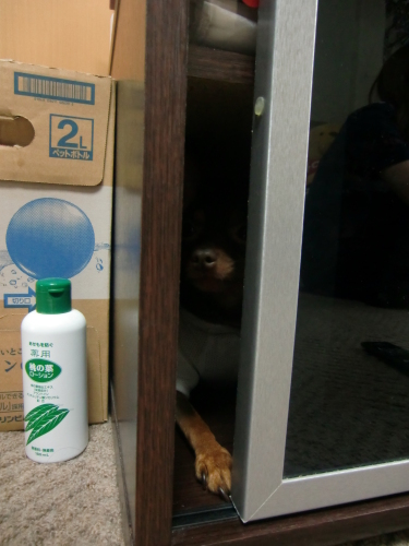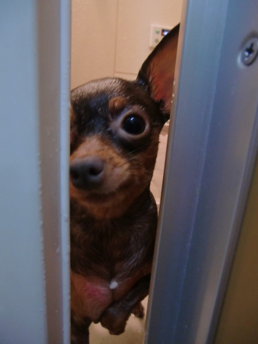 昨日タイガにお風呂に入れてもらったブブちゃんキレイになりました病院でもらった薬用シャンプーを使っているのであわ立てたあと殺菌のために10分ほど流さずに待たなければいけません お水嫌いなブブちゃんは早く出たくてしかたありません(>_<)でも我慢我慢また痒くなってきてるみたいです出たあとはまたまた嫌いなドライヤーキッチンに逃げておりますこのブブドーベルマンみたいで可愛い無事ドライヤーも終わりキレイになりましたブブがお水好きなら海や川に一緒にいけるのにな くぅ