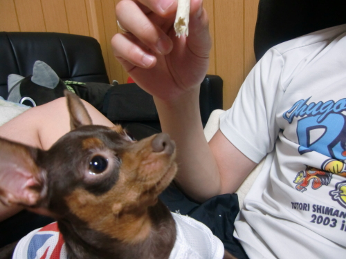 タイガにおやつをもらうときは必ずじらされます近くにあるのに食べれなくてウズウズするブブちゃんちゃんと待つから偉いでもヨダレはとまらない(笑)待たされること3分少々…歯磨きガムだからゆっくり食べてほしいのにものすごい勢いで食べる(^^;まぁ頑張って待ったから仕方ない食べたら満足して眠りに入るブブなのでした くぅ